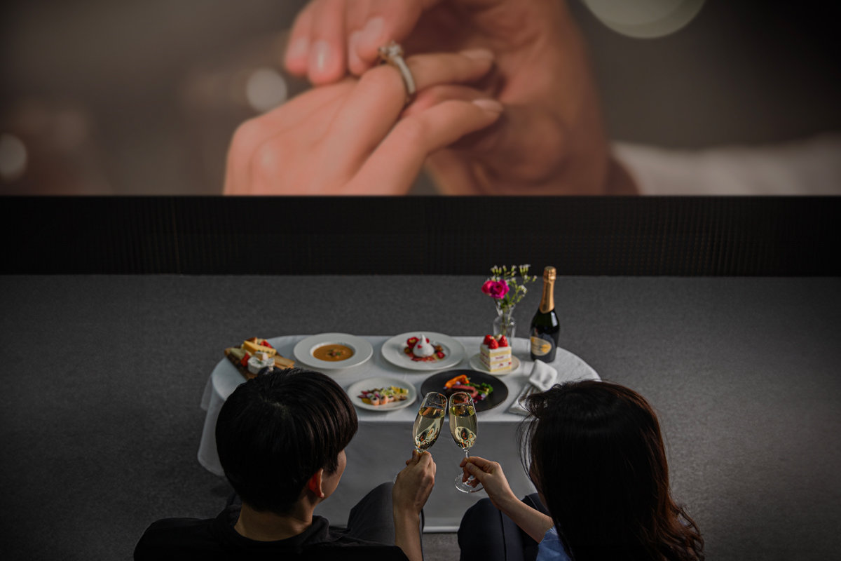 호텔 셰프의 4가지 코스요리로 영화관에서 두 사람만을 위한 만찬도 즐길 수 있다. 영화 관람과 프러포즈 이벤트 시간을 합쳐 최대 3시간을 이용할 수 있으며, 영상 송출 테스트 및 상영관 전체 대관을 위해 1주일 전 예약을 해야 한다.