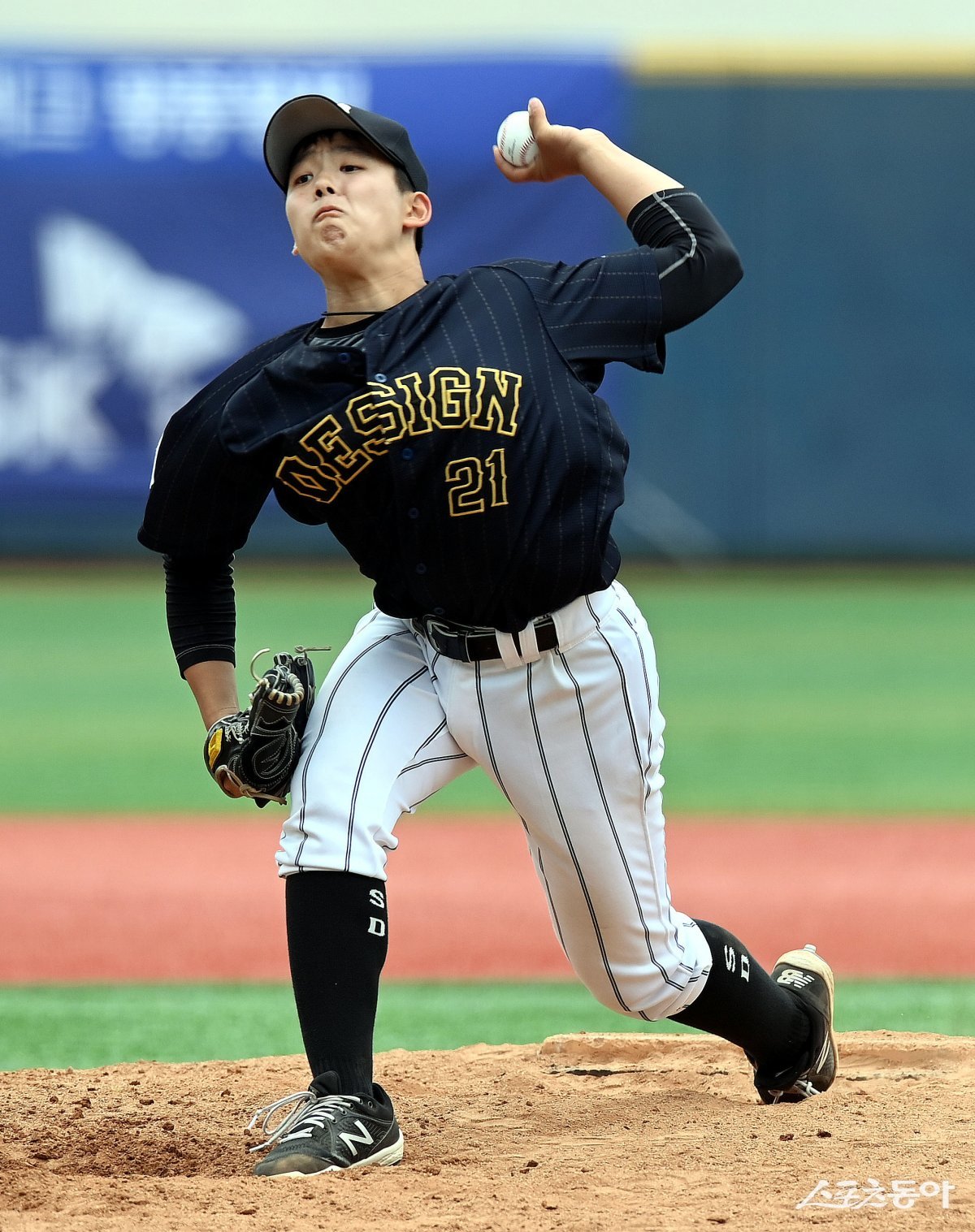 20일 서울 목동야구장에서 ‘제 78회 황금사자기 전국고교야구대회 겸 주말리그 왕중왕전(동아일보사·스포츠동아·대한야구소프트볼협회 공동주최)’ 비봉고와 서울디자인고의 경기가 열렸다. 3회말 서울디자인고 임예성이 구원 등판해 볼을 던지고 있다.
