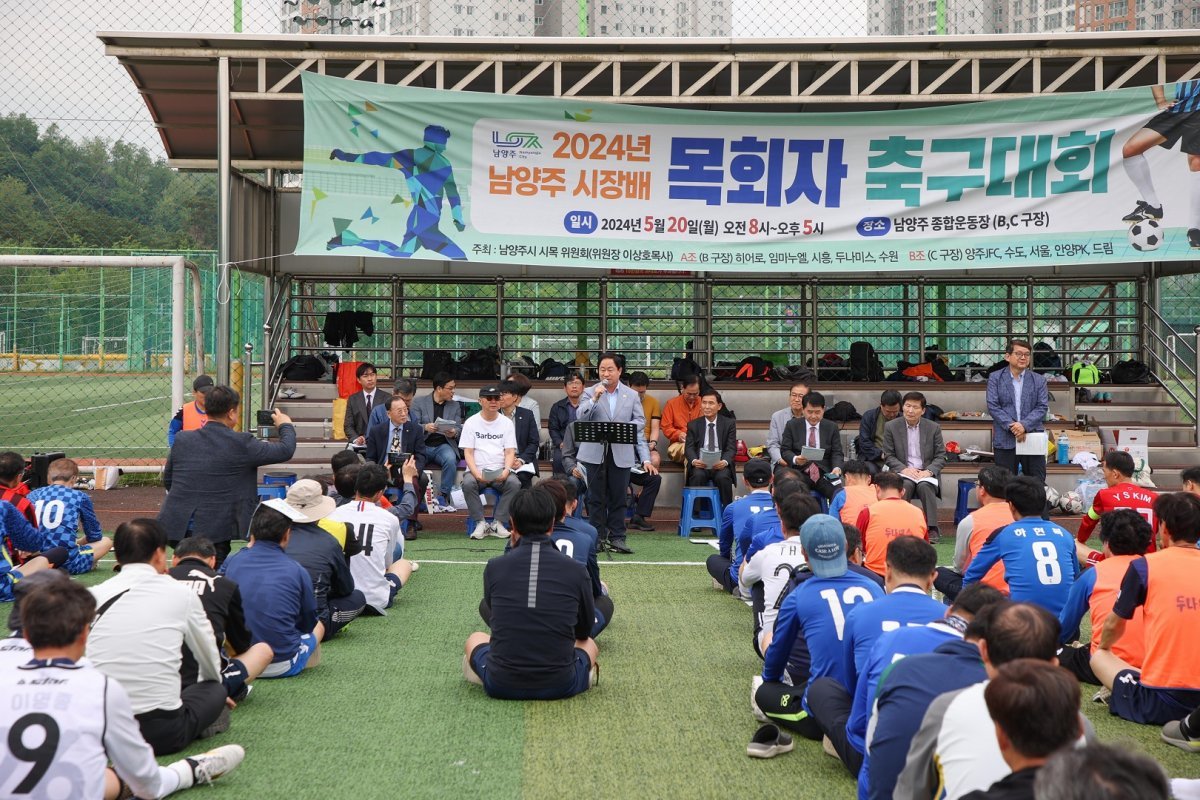 남양주시 시목위원회(위원장 이상호)는 20일 남양주체육문화센터에서 ‘2024년 남양주시장배 목회자 축구대회’를 개최했다. 이날 대회는 주광덕 남양주시장을 비롯해 목회자 및 관계인 등 200여 명이 참여한 가운데 △개회 예배 및 축사 △시축 △결승전 △폐회 및 시상식 순으로 진행됐다.