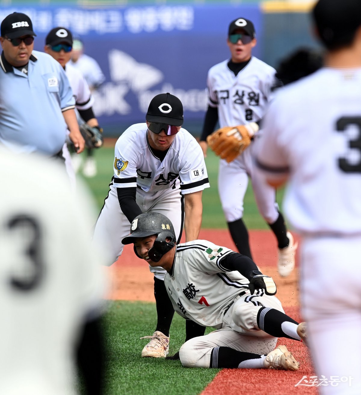 22일 서울 목동야구장에서 ‘제 78회 황금사자기 전국고교야구대회 겸 주말리그 왕중왕전(동아일보사·스포츠동아·대한야구소프트볼협회 공동주최)’ 전주고와 대구상원고의 16강 경기가 열렸다. 4회초 무사 1루에서 전주고 엄준현이 견제 후 협살에 걸려 상원고 남태웅에게 태그 아웃되고 있다.