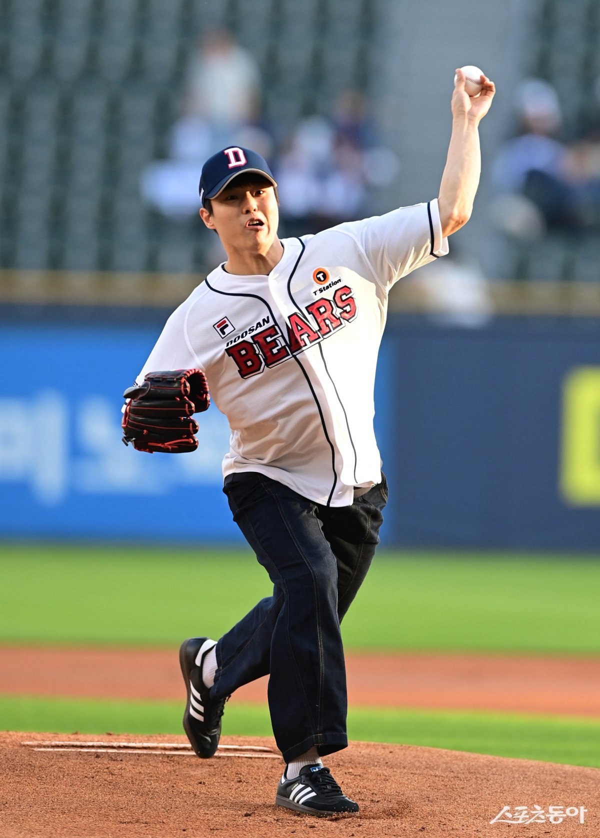 22일 서울 잠실야구장에서 열린 ‘2024 신한 SOL 뱅크 KBO리그’ 두산 베어스와 SSG 랜더스의 경기에 앞서 두산 핸드볼팀 김연빈이 시구를 하고 있다.
