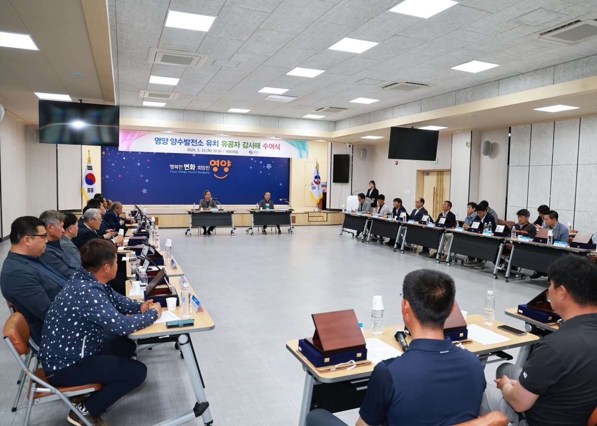 영양군(군수 오도창)은 23일 영양군청 대회의실에서 영양 양수발전소 유치에 기여한 유공자 29명에 대해 감사패를 전달했다.이날 행사는 작년 12월 산자부 ‘신규 양수발전 사업자 선정 결과’ 발표에 따라 지난해 양수발전소 유치를 위해 적극적으로 활동한 ’양수발전소 영양군 유치를 위한 범군민 유치위원회(이하 범군민 유치위원회)‘ 관계자들의 노고를 격려하고 전군민적 자긍심을 고취하고자 추진하게 된 것으로 전해졌다.