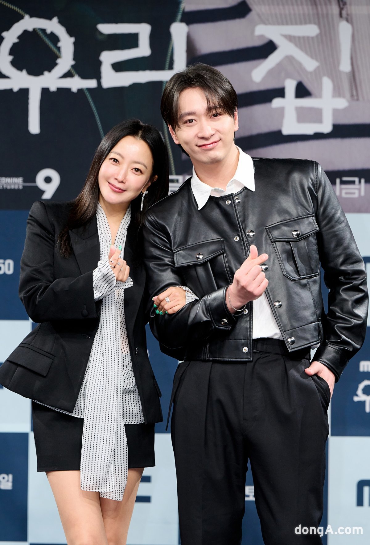 김희선, 황찬성이 23일 진행된 MBC 새 금토드라마 ‘우리, 집’ 제작발표회에서 포즈를 취하고 있다.