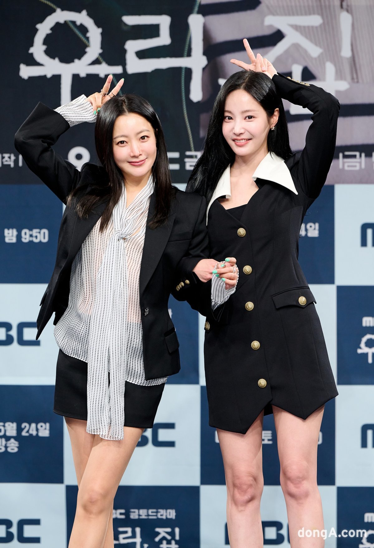 김희선, 연우가 23일 진행된 MBC 새 금토드라마 ‘우리, 집’ 제작발표회에서 포즈를 취하고 있다.