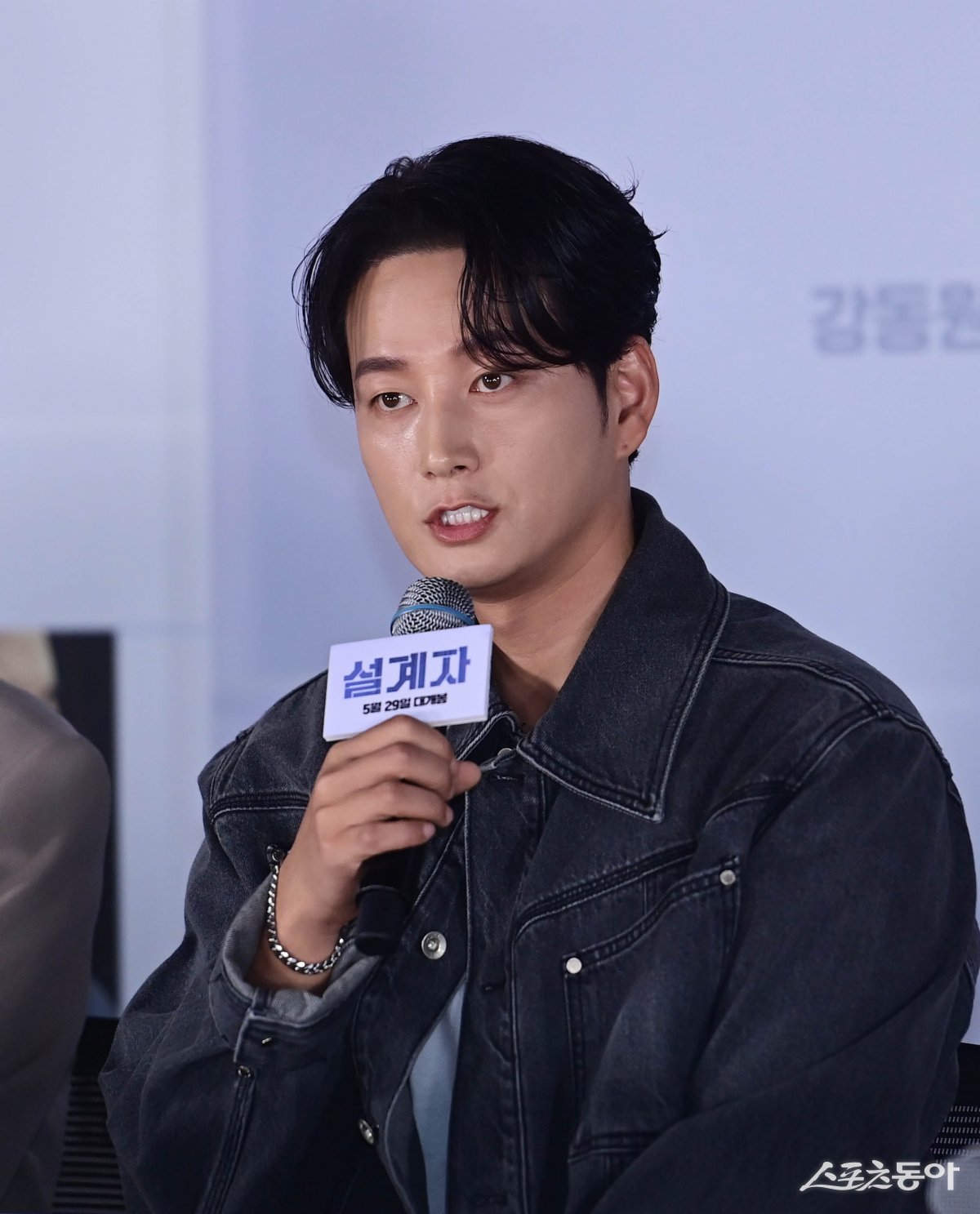 배우 이현욱이 23일 서울 송파구 신천동 롯데시네마 월드타워점에서 열린 영화 ‘설계자’ 언론시사회에서 인사말을 하고 있다.
