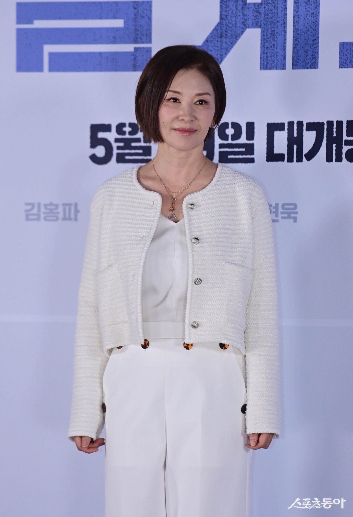 배우 이미숙이 23일 서울 송파구 신천동 롯데시네마 월드타워점에서 열린 영화 ‘설계자’ 언론시사회에서 포즈를 취하고 있다.