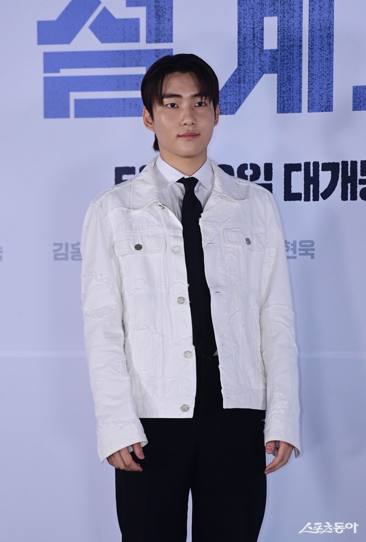 배우 탕준상이 23일 서울 송파구 신천동 롯데시네마 월드타워점에서 열린 영화 ‘설계자’ 언론시사회에서 포즈를 취하고 있다.