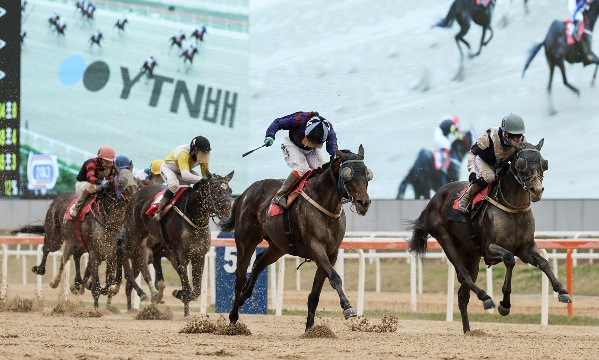 이번 경주 가장 강력한 우승후보인 글로벌히트가 스테이어 시리즈 직전 경주인 YTN배에서 우승하는 모습. 첫 경주도 석권해 이번 부산광역시장배에서 우승하면 시리즈를 석권하게 된다. 사진제공|마사회 부경