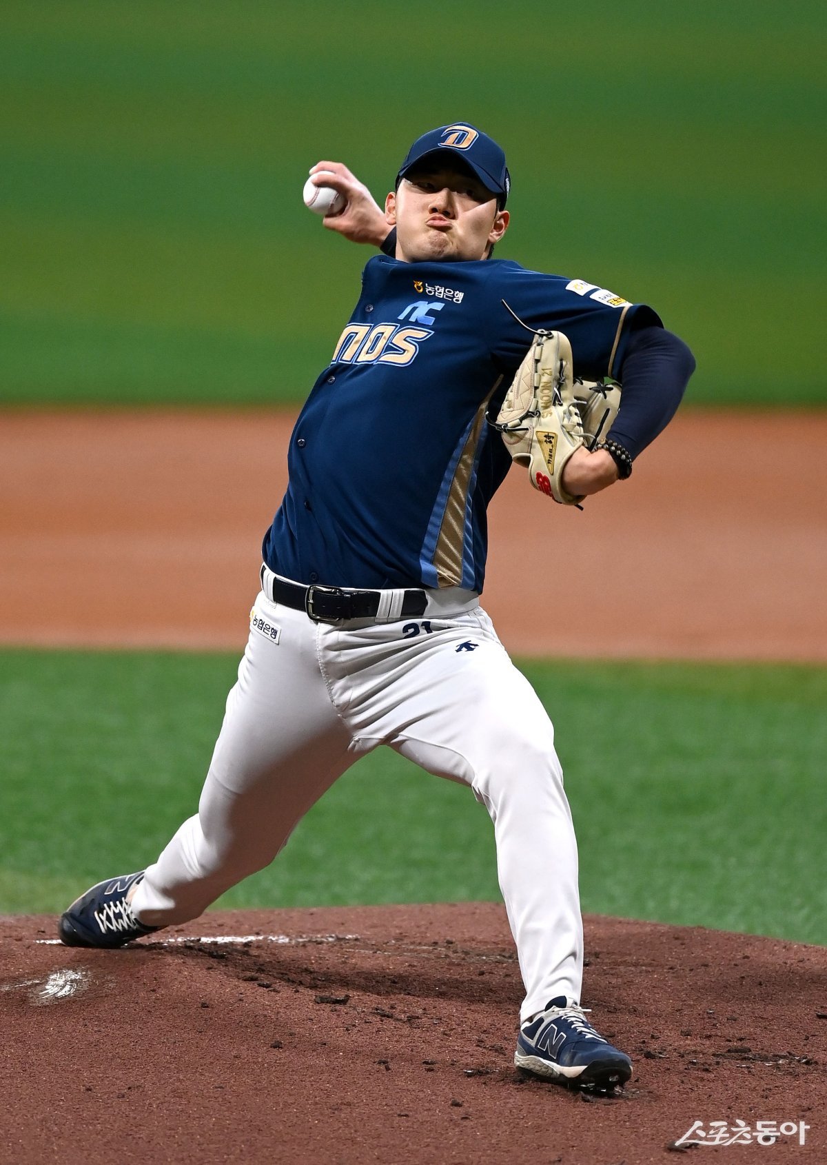 23일 서울 고척스카이돔에서 ‘2024 신한은행 SOL뱅크 KBO리그’ NC 다이노스와 키움 히어로즈 경기가 열렸다. 선발 투수로 등판한 NC 김시훈이 역투하고 있다.