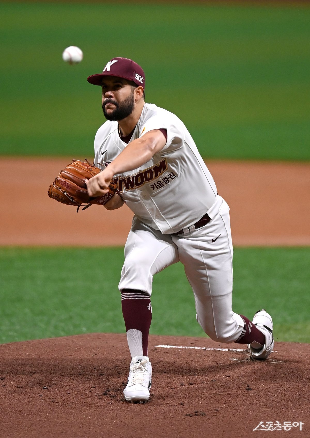 23일 서울 고척스카이돔에서 ‘2024 신한은행 SOL뱅크 KBO리그’ NC 다이노스와 키움 히어로즈 경기가 열렸다. 선발 투수로 등판한 키움 헤이수스가 역투하고 있다.