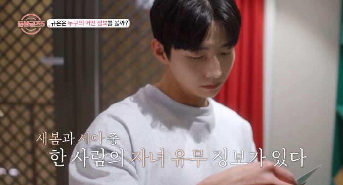 모두가 데이트를 마친 뒤, ‘돌싱 하우스’에 모이자 ‘두 번째 정보 공개’ 관련 문자 메시지가 전달됐다. “궁금한 사람의 한 가지 정보를 미리 알 수 있는 ‘정보공개방’이 열린다”는 내용이 밝혀진 것. 이에 규온이 가장 먼저 ‘정보공개방’에 입장했고, 그는 ‘첫인상 1위’인 세아와 첫 데이트 상대였던 새봄을 놓고 고민하다 누군가의 ‘자녀 유무’ 정보를 열람했다. 정보가 담긴 봉투 안에는 “자녀가 1명 있으며, 양육 중”이라는 내용이 적혀 있었다. 이에 5MC는 “새봄일까? 아니면 세아일까?”라며 촉을 가동했다. 과연 해당 정보의 주인공이 누구인지, 그리고 나머지 7인의 정보공개 열람 결과가 향후 돌싱들의 러브라인에 어떤 영향을 끼칠지 관심이 치솟는다.