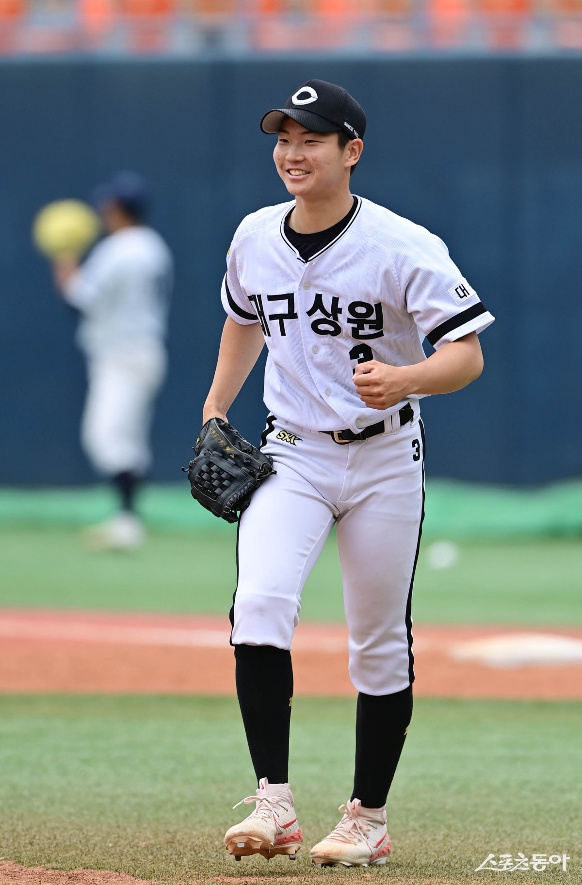 26일 서울 목동야구장에서 열린 ‘제78회 황금사자기 전국고교야구대회 겸 주말리그 왕중왕전’ 4강전 강릉고와 대구상원고의 경기에서 5회초 수비를 마친 대구상원고 이동영이 기뻐하고 있다.