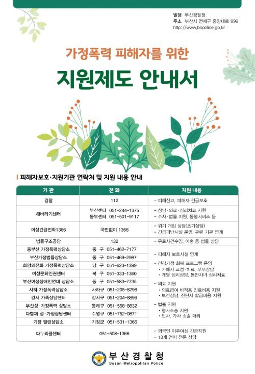 가정폭력 피해자를 위한 지원제도 안내서. 사진제공|부산경찰청