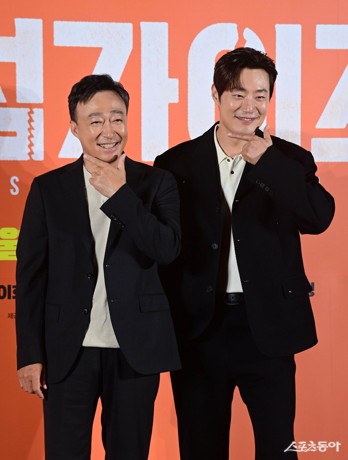 배우 이성민, 이희준이 27일 서울 광진구 자양동 롯데시네마 건대입구점에서 열린 영화 ‘핸섬가이즈’ 제작보고회에서 포즈를 취하고 있다.