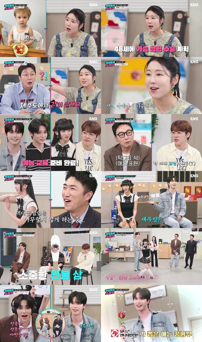 그러면서도 사유리는 “48세에 가슴 수술을 하고 2년 뒤인 50세부터 연애를 할 것”이라고 반전 인생 플랜을 공개해 모두를 놀라게 했다. 이때 MC들은 “그러면 저희 유니콘 엔터에 멋진 하입보이들이 많으니까 ‘젠 새아빠 찾기 프로젝트’를 진행해보겠다”고 깜짝 선포해 사유리를 들뜨게 했다.