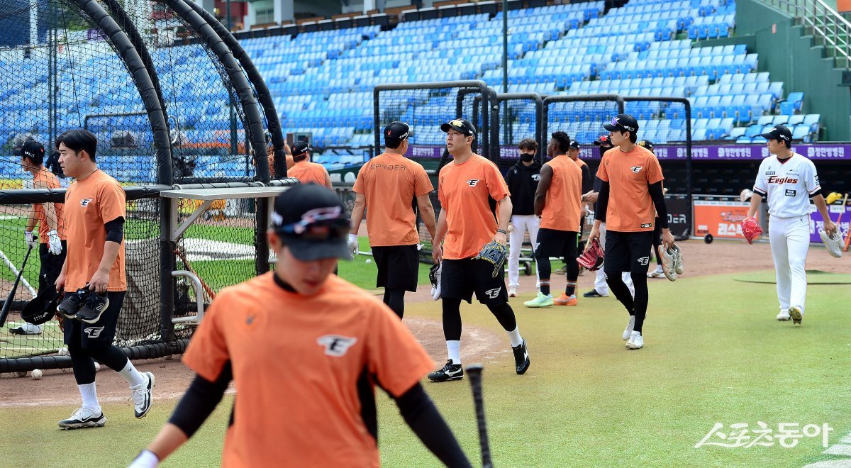 28일 대전 한화생명이글스파크에서 ‘2024 신한 SOL 뱅크 KBO리그’ 한화 이글스와 롯데 자이언츠의 경기가 열린다. 한화 최원호 감독의 자진 사퇴로 어수선한 분위기 속에 선수들이 훈련을 펼치고 있다.