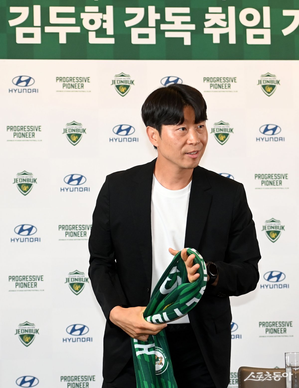 프로축구 전북현대 제8대 김두현 신임 감독이 29일 강원도 춘천시 더잭슨나인스호텔에서 열린 취임 기자회견을 마치고 인사를 하고 있다.