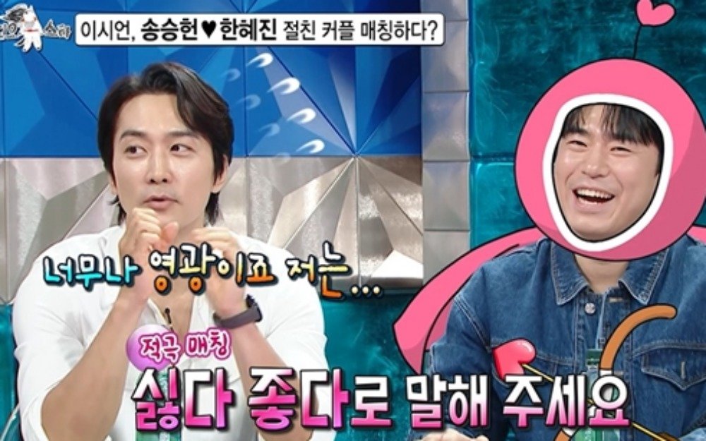 ‘라디오스타’ 송승헌이 갑자기 들어온 한혜진과의 소개팅 제안에 놀란다.