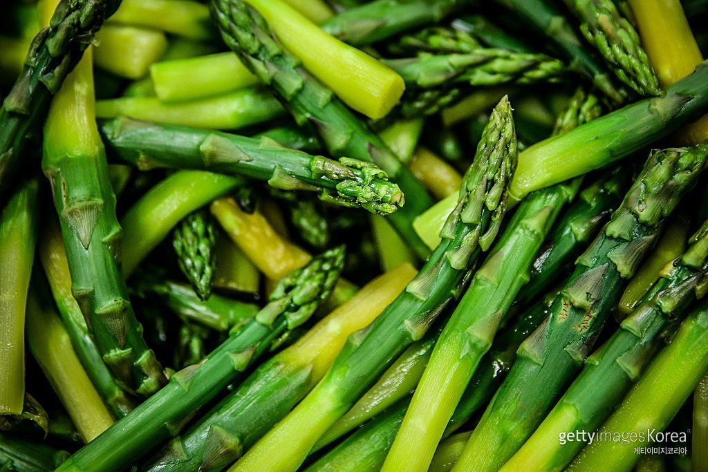 남유럽이 원산지인 아스파라거스는 우리에게도 친숙한 채소다. 숙취해소에 좋은 아스파라긴산(아미노산의 일종)이 아스파라거스에서 처음 발견됐다. 유럽에서는 정력에 좋은 것으로 알려져 중세 수도원에선 식용을 금지했다. 몸에 좋은 성분이 많은 건강 채소라는 게 알려지면서 수요가 늘어 국내 재배면적도 늘고 있다. 4~5월이 제철이다.