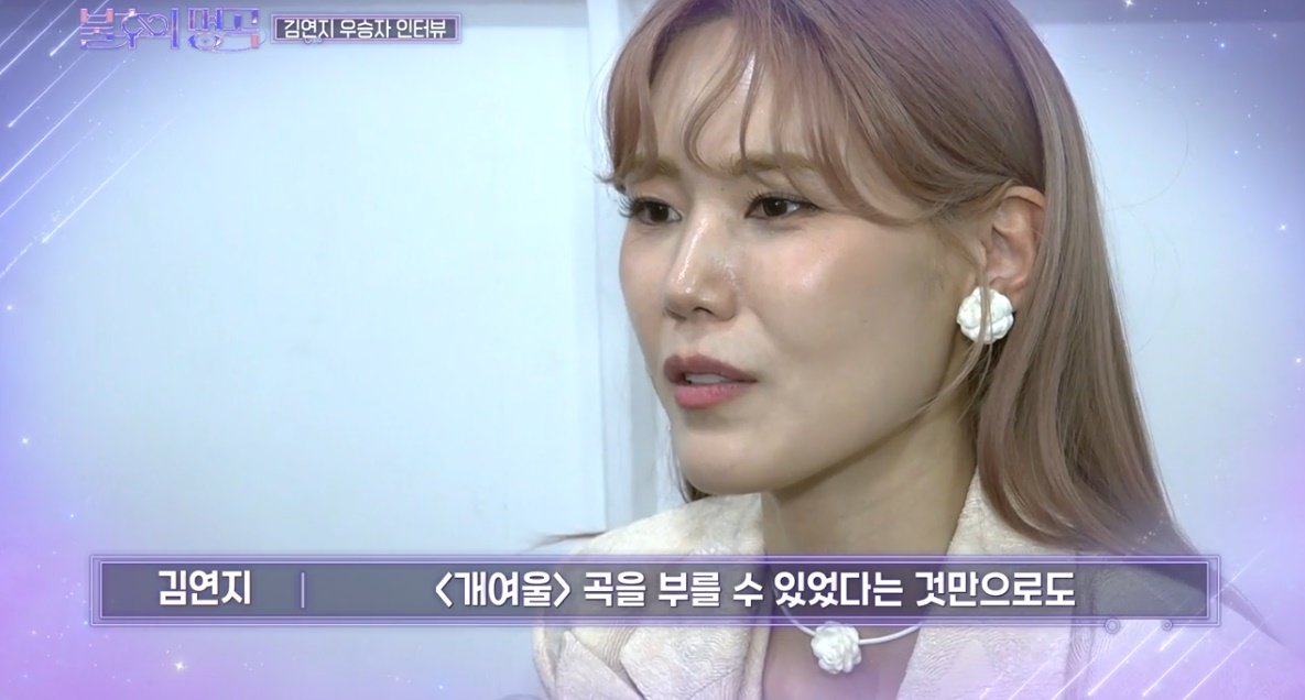 다섯 번째 무대에 김연지였다. 우승 트로피가 절실하다는 김연지는 정미조의 대표곡 ‘개여울’로 무대에 올랐다. 부담과 설렘을 동시에 나타낸 김연지는 잠잠한 도입부에 이어 특유의 고음을 폭발시키며 모두의 눈과 귀를 긴장시켰다. 김연지는 정미조의 이국적인 매력은 살리면서도 주무기인 감성 고음을 전면에 내세우며 탄성을 자아내게 만들었다.