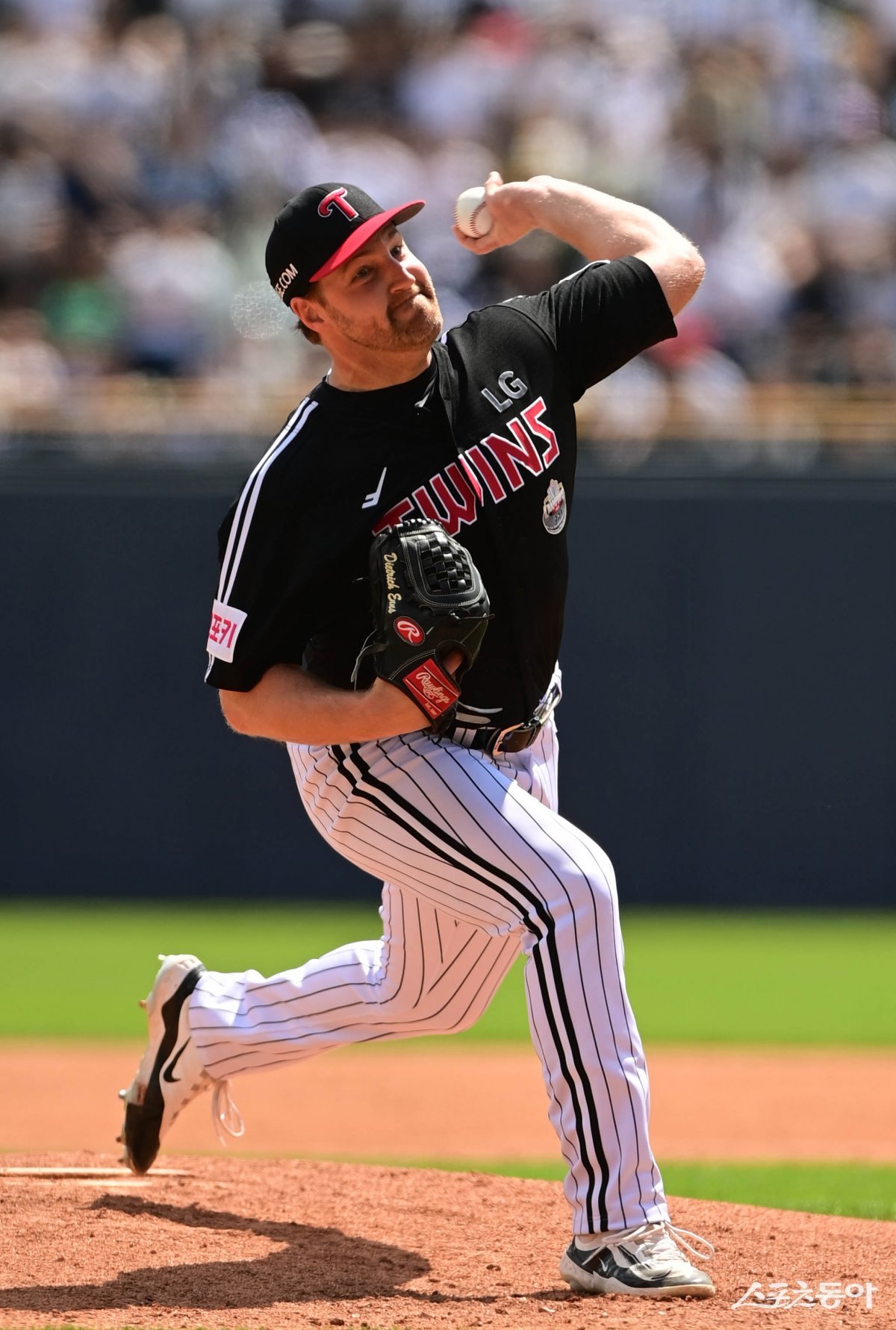 2일 서울 잠실야구장에서 열린 ‘2024 신한 SOL 뱅크 KBO리그’ LG 트윈스와 두산 베어스의 경기에서 LG 선발 투수 엔스가 마운드에 올라 역투하고 있다.