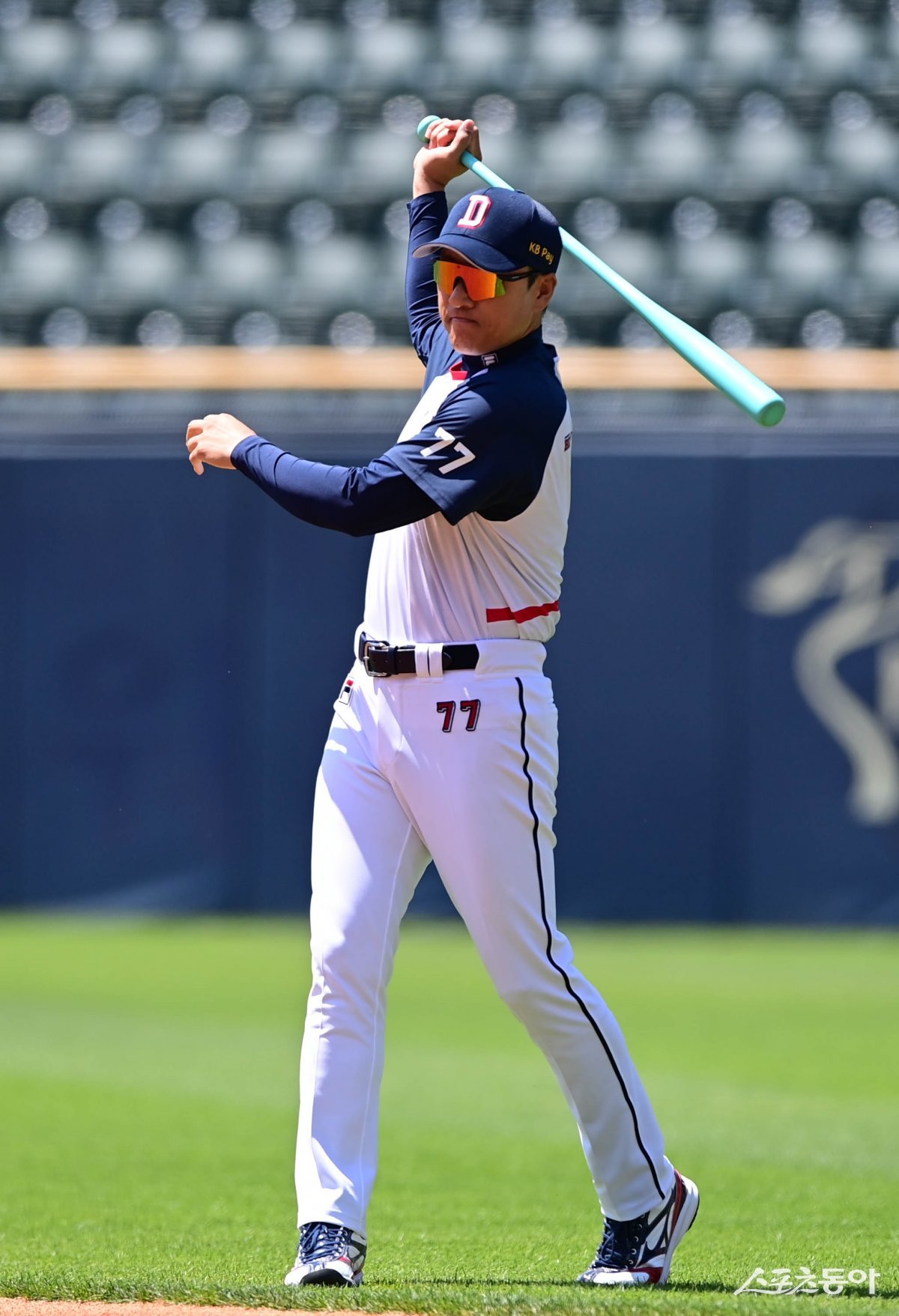 2일 서울 잠실야구장에서 열린 ‘2024 신한 SOL 뱅크 KBO리그’ LG 트윈스와 두산 베어스의 경기에 앞서 두산 이승엽 감독이 스윙을 하고 있다.