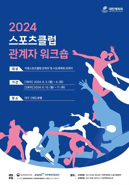 대한체육회(회장 이기흥)가 3일부터 11일까지 총 2회에 걸쳐 대구 그랜드호텔에서 스포츠클럽 관계자 대상으로 2024년 스포츠클럽 관계자 워크숍을 개최한다.