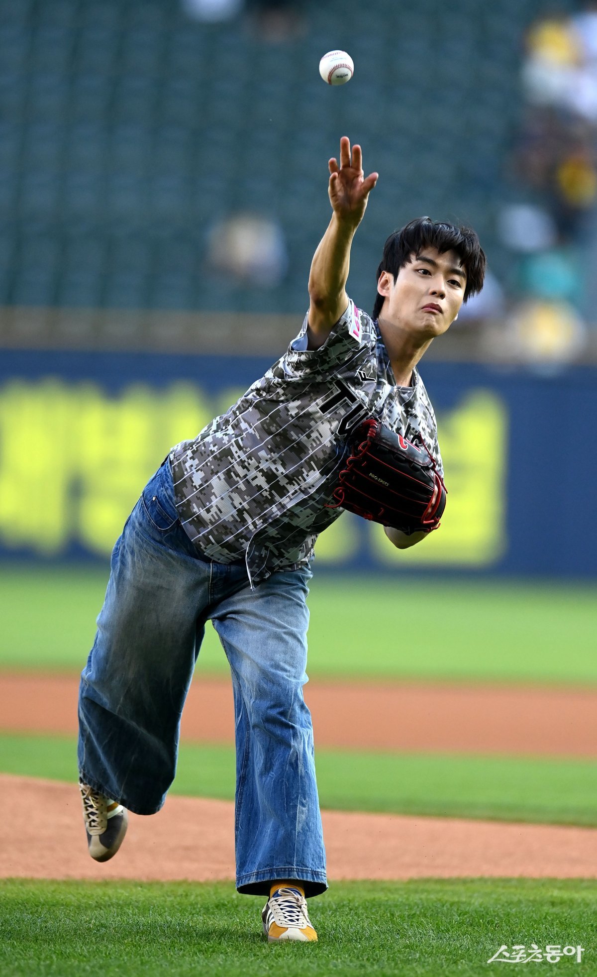 4일 서울 잠실야구장에서 ‘2024 신한은행 SOL뱅크 KBO리그’ 키움 히어로즈와 LG 트윈스 경기가 열렸다. 가수 잠골버스 정일호가 시구를 하고 있다.