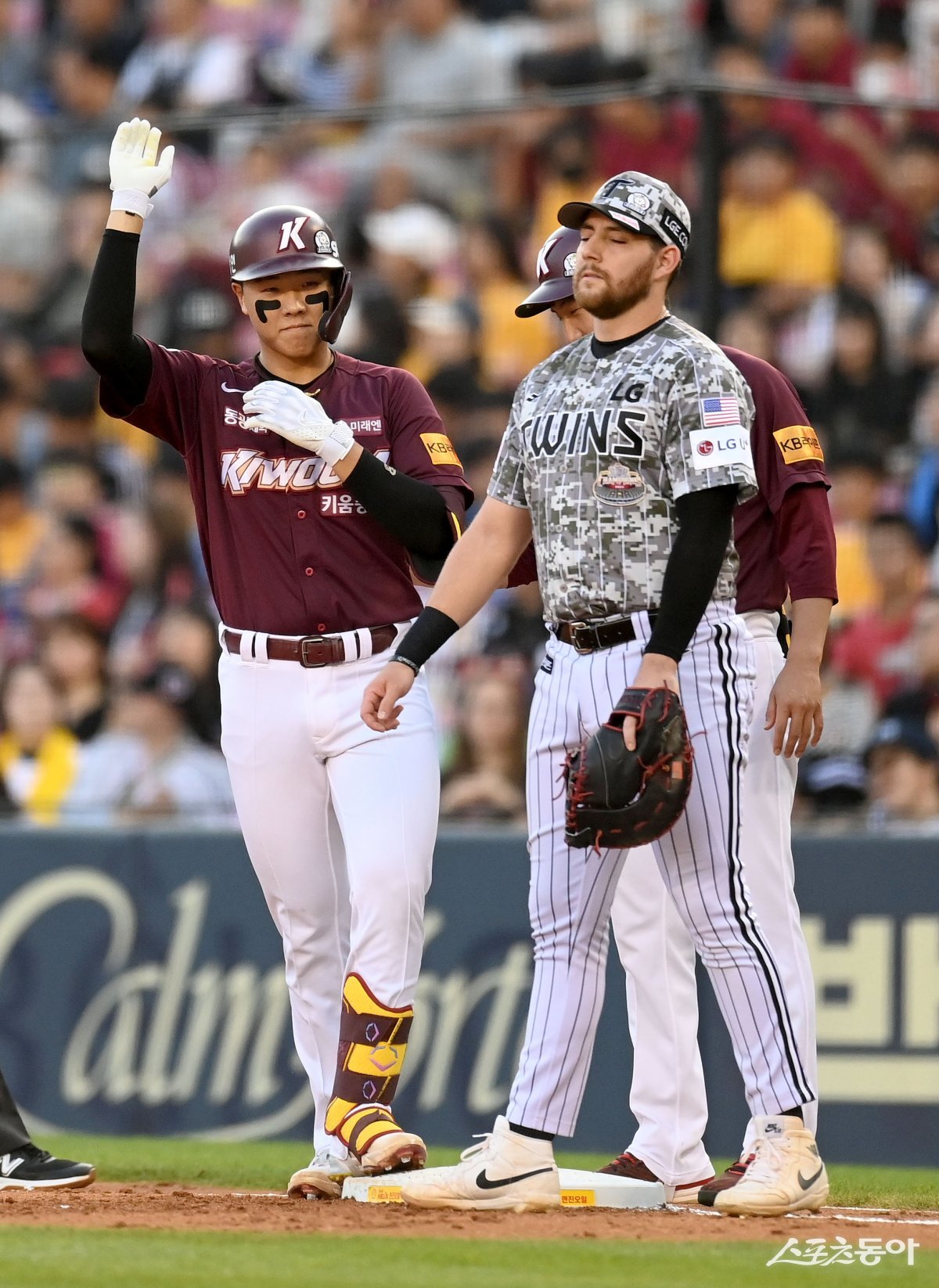 4일 서울 잠실야구장에서 ‘2024 신한은행 SOL뱅크 KBO리그’ 키움 히어로즈와 LG 트윈스 경기가 열렸다. 2회초 1사 3루 키움 이재상이 1타점 적시타를 치고 1루에서 기뻐하고 있다.