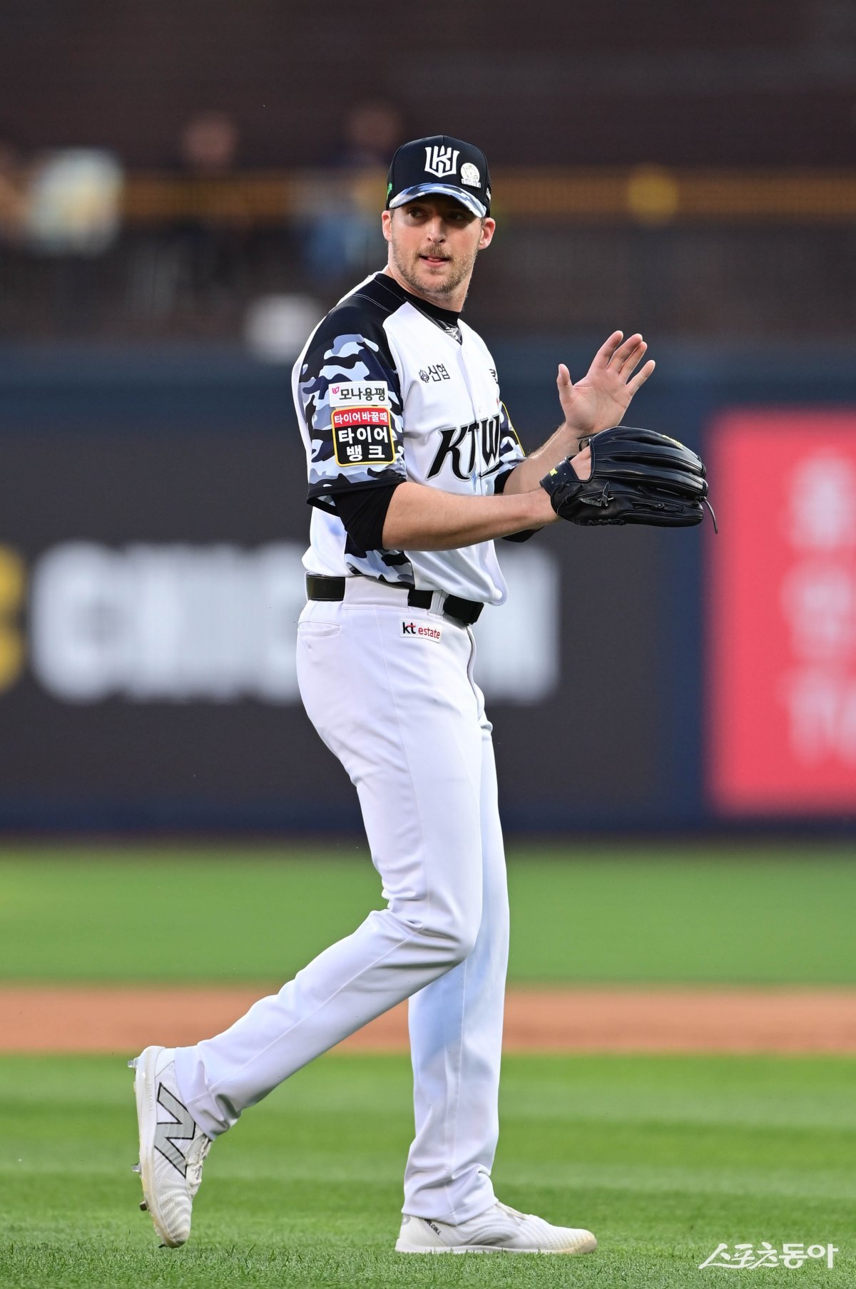 4일 경기도 수원KT위즈파크에서 열린 ‘2024 신한 SOL 뱅크 KBO리그’ 한화 이글스와 KT 위즈의 경기에서 1회초 무실점으로 수비를 마친 KT 벤자민이 손벾을 치고 있다.