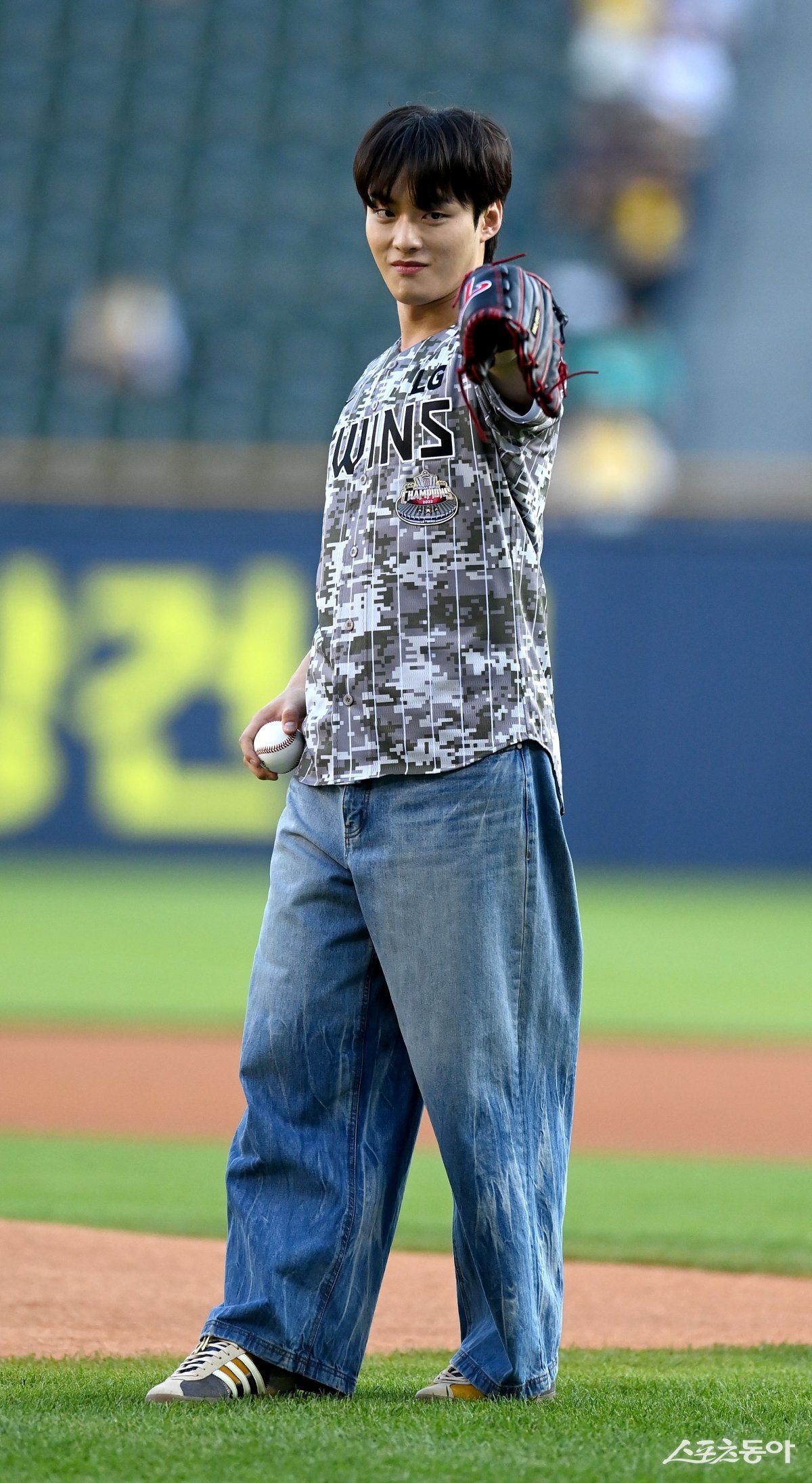 4일 서울 잠실야구장에서 ‘2024 신한은행 SOL뱅크 KBO리그’ 키움 히어로즈와 LG 트윈스 경기가 열렸다. 가수 잠골버스 정일호가 시구를 하고 있다.
