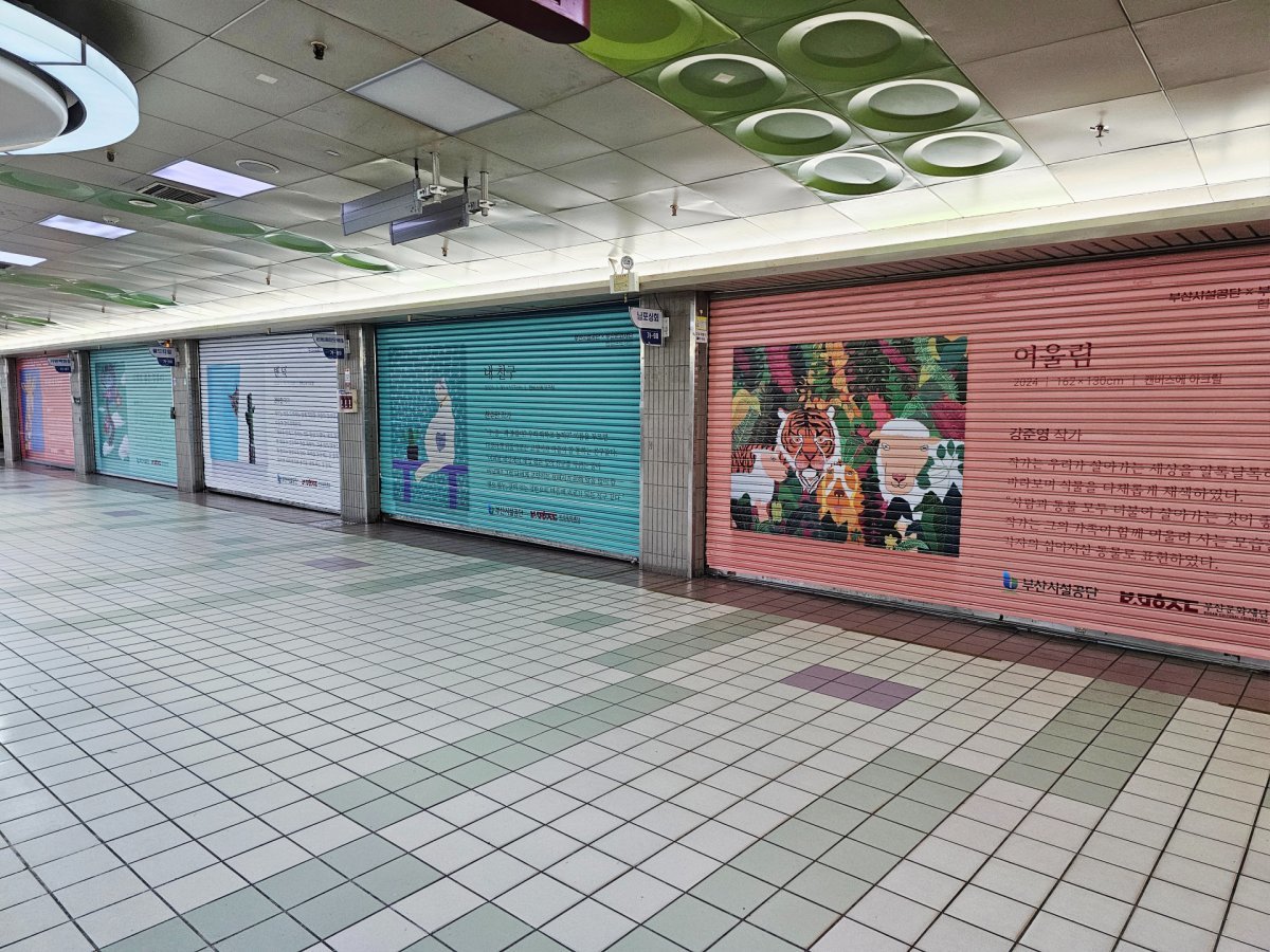 부산시설공단(이사장 이성림)이 부산문화재단과 협력해 남포지하도상가 셔터를 아트 갤러리로 조성했다고 5일 밝혔다.장애예술가 5人 창작품, 셔터갤러리로 조성