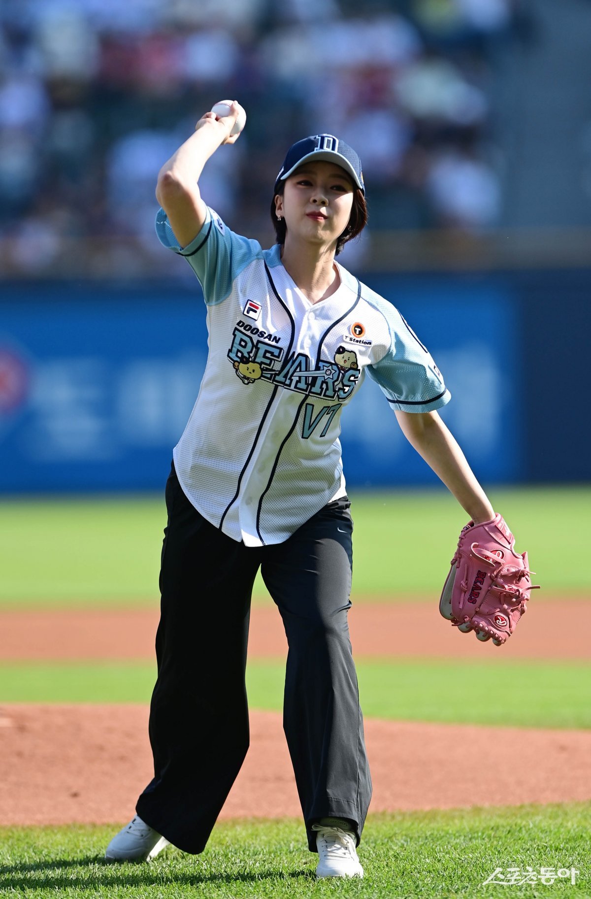 9일 서울 잠실야구장에서 열린 ‘2024 신한 SOL 뱅크 KBO리그’ KIA 타이거즈와 두산 베어스의 경기에 앞서 배현진 의원이 시구를 하고 있다.