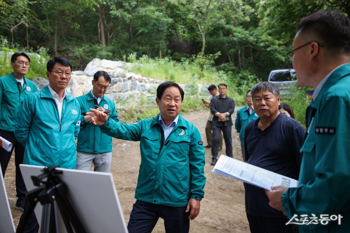 먼저, 주 시장은 산사태 취약지역으로 지정된 와부읍 도곡리 사방시설 설치공사 현장을 방문해 공사 진행 상황 등을 점검했으며, 이달 말까지 공사를 완료해 여름철 수해로 인한 피해를 최소화할 것을 주문했다.