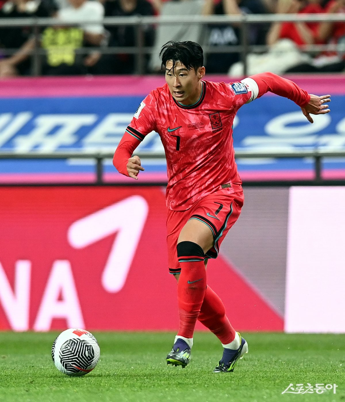 손흥민이 11일 서울월드컵경기장에서 열린 중국과 북중미월드컵 2차 예선 홈경기 도중 드리블을 하고 있다. 상암 | 김민성 기자 marineboy@donga.com