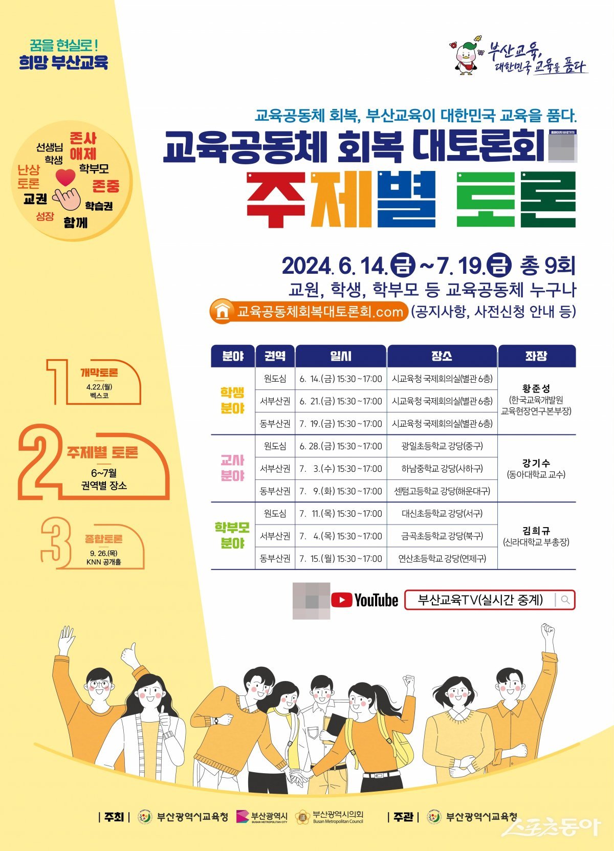 이번 주제별 토론은 개막토론과 마찬가지로 ‘부산교육 TV’ 유튜브 채널을 통해 생중계한다.