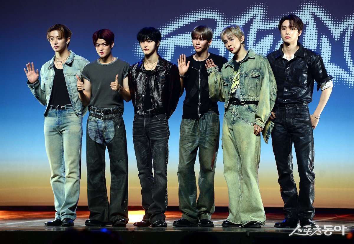 17일 서울 용산구 블루스퀘어 마스터카드홀에서 라이즈(RIIZE) 첫 번째 미니앨범 ‘라이징(RIIZING)’ 발매 기념 쇼케이스가 열렸다. 라이즈 앤톤, 소희, 원빈, 은석, 쇼타로, 성찬이 포즈를 취하고 있다. 김민성 기자 marineboy@donga.com