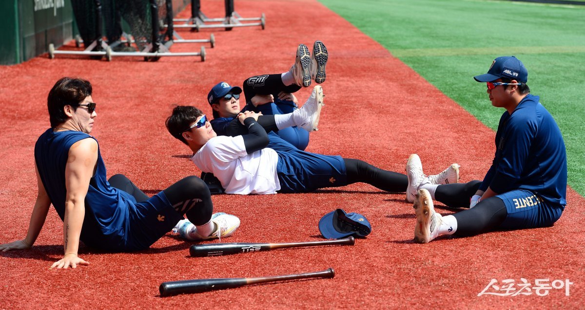 23일 인천 SSG 랜더스필드에서 ‘2024 신한 SOL 뱅크 KBO리그’ SSG 랜더스와 NC 다이노스의 경기가 열린다. 경기 전 NC 선수들이 스트레칭 훈련을 펼치고 있다. 인천 | 김민성 기자 marineboy@donga.com