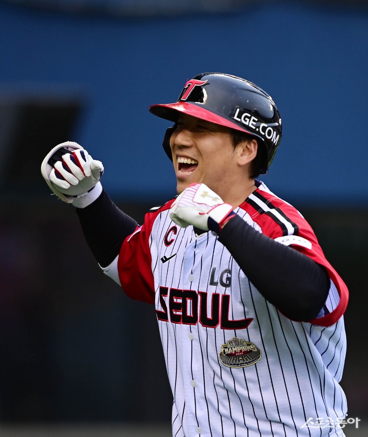 23일 서울 잠실야구장에서 열린 ‘2024 신한 SOL 뱅크 KBO리그’ KT 위즈와 LG 트윈스의 더블헤더 2차전 경기에서 3회말 1사 1루 LG 김현수가 우월 2점홈런을 친 후 세리머니를 하고 있다. 잠실 | 주현희 기자 teth1147@donga.com