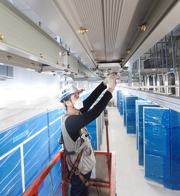 LS전선 직원이 버스덕트를 설치하고 있다. 사진 제공 |LS전선