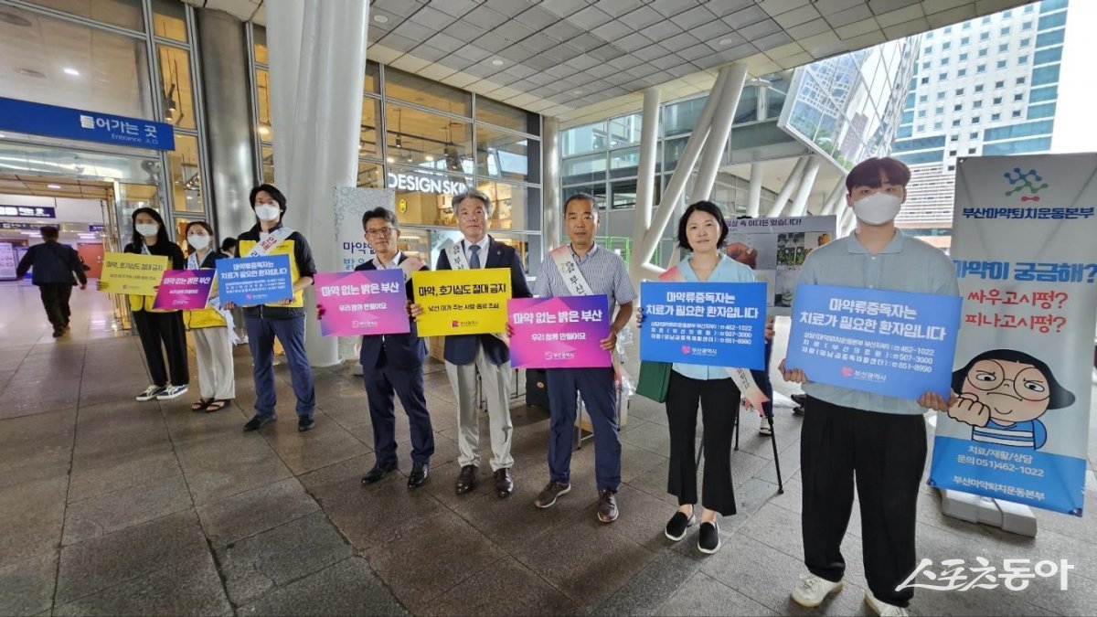 지난해 부산역 광장에서 마약류 폐해 알림 캠페인을 진행하고 있는 모습. (사진제공=부산시)