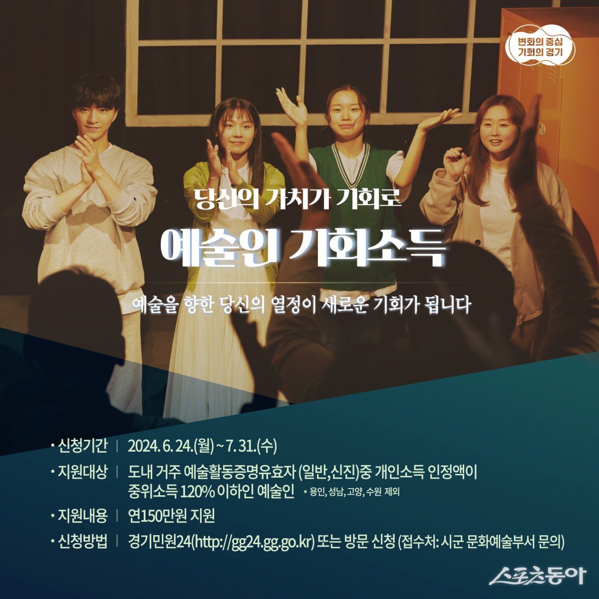 경기도 평택시는 관내 예술인에게 기회소득 150만 원을 지급하는 ‘경기도 예술인 기회소득’ 지급 사업을 오는 7월 31일까지 접수하고 있다고 25일 밝혔다.
