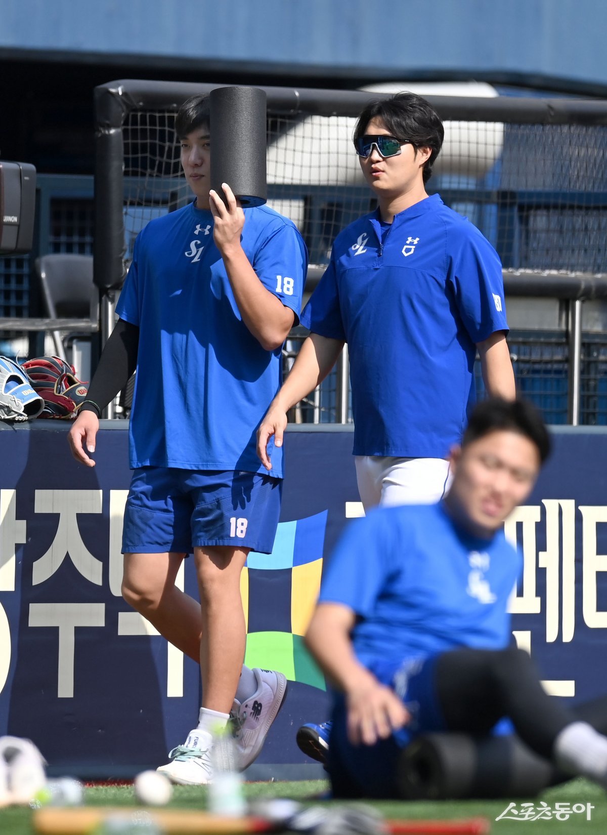 25일 서울 잠실야구장에서 ‘2024 신한은행 SOL뱅크 KBO리그’ 삼성 라이온즈와 LG 트윈스 경기가 열린다. 경기 전 삼성 원태인이 햇빛을 가리고 걸어가고 있다. 잠실 | 김종원 기자 won@donga.com