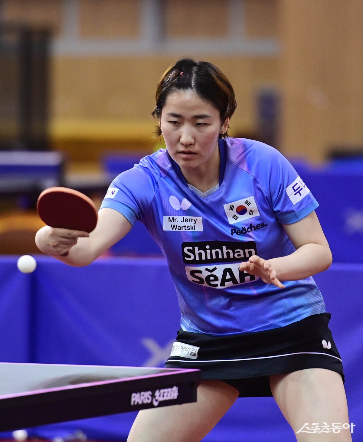 25일 충북 진천국가대표선수촌에서 열린 ‘2024 파리올림픽 탁구 미디어데이’에서 한국 탁구 대표팀 이은혜가 훈련을 하고 있다. 진천 | 주현희 기자 teth1147@donga.com