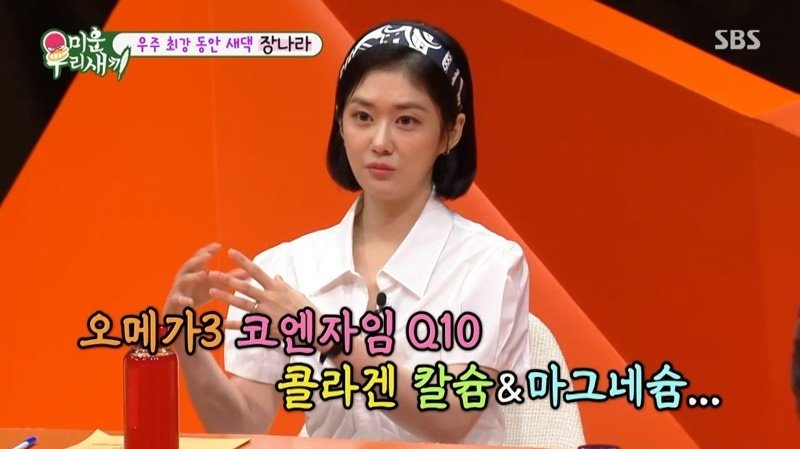 이날 스튜디오에는 배우 장나라가 스페셜 MC로 출연해 ‘우주 최강 동안 비법’으로 ‘영양제 과식’을 고백해 눈길을 끌었다. 신동엽은 “건강에 특별히 신경 쓸 수밖에 없는 게 6세 연하 남편과 살고 있다”라고 말해 웃음을 자아냈다.