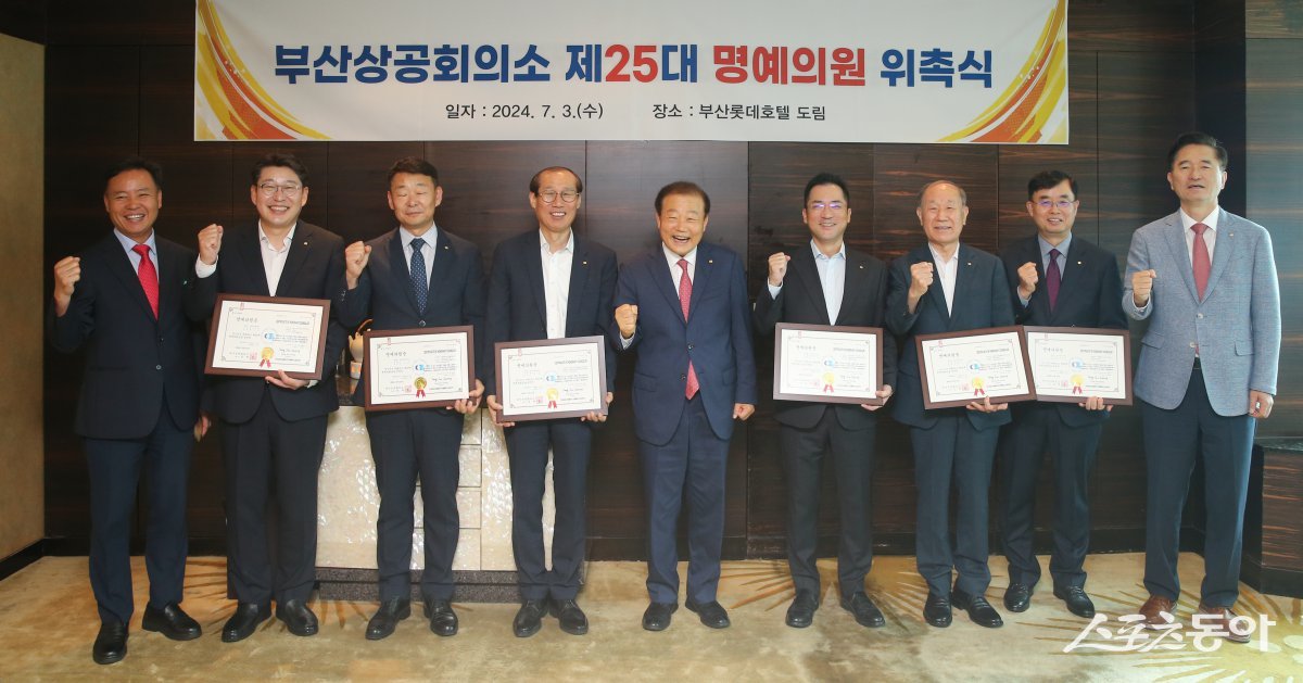 부산상공회의소(회장 양재생)가 지난 3일 부산롯데호텔에서 제25대 의원부와 함께 활동하게 될 지역 대표기업인 10명에게 명예의원증과 의원 배지를 수여하는 ‘제25대 명예의원 위촉식’을 개최했다고 4일 밝혔다.