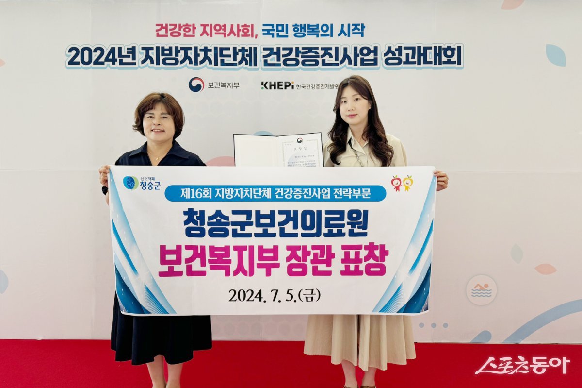 청송군보건의료원은 5일 서울 The-k 컨벤션센터에서 열린 ‘제16회 지방자치단체 건강증진사업 평가’에서 전략부문 보건복지부장관 표창을 2년 연속 수상했다.