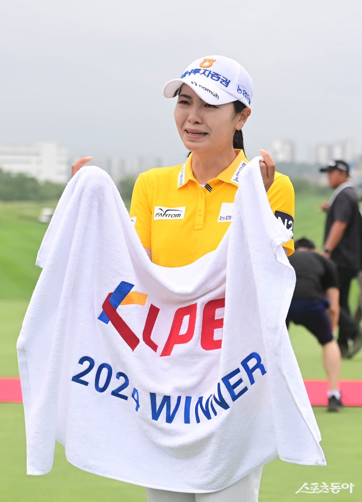 7일 인천 베어즈베스트 청라GC에서 열린 2024 KLPGA ‘롯데 오픈’ 최종라운드 연장 18번홀에서 우승을 차지한 이가영이 눈물을 흘리고 있다. 인천 | 주현희 기자 teth1147@donga.com
