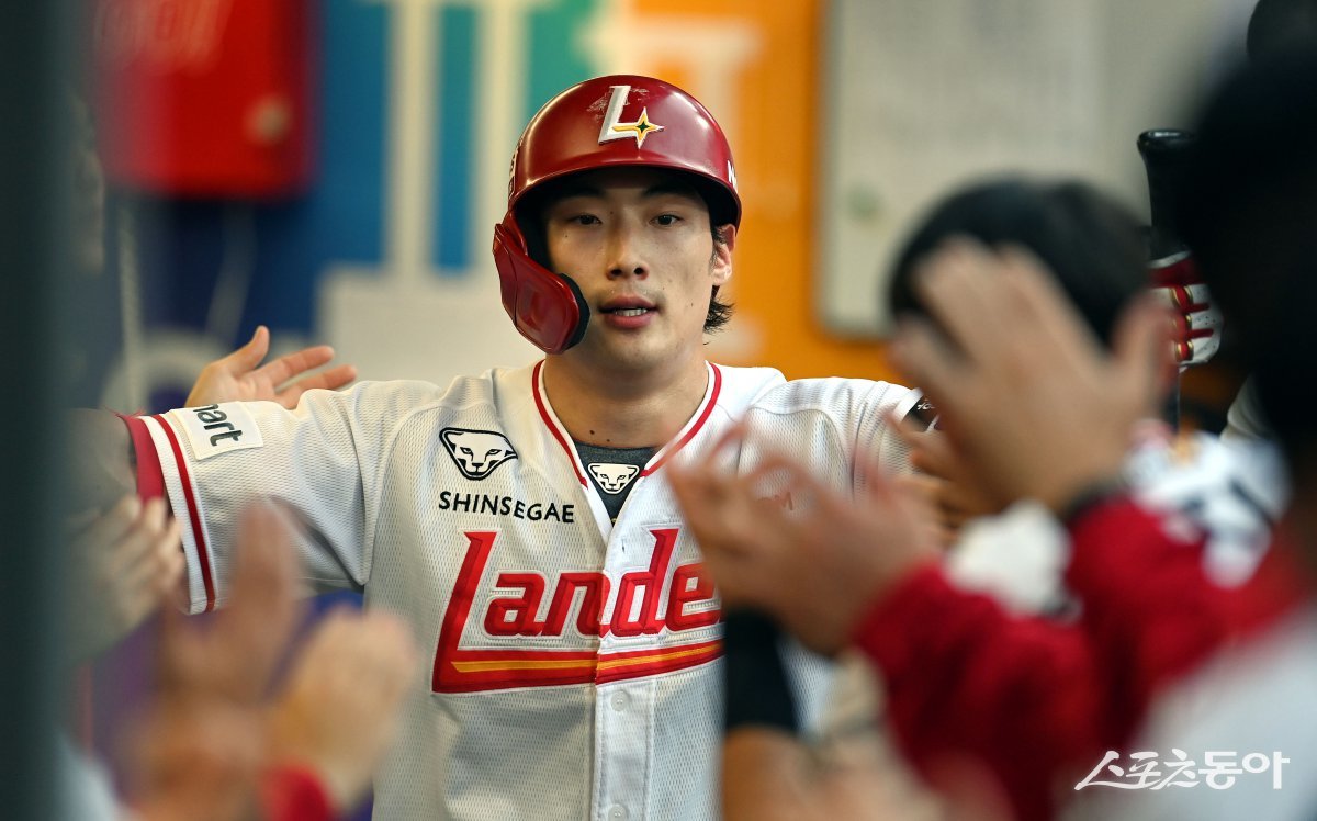 9일 인천 SSG 랜더스필드에서 ‘2024 신한 SOL 뱅크 KBO리그’ SSG 랜더스와 롯데 자이언츠의 경기가 열렸다. 1회말 무사에서 SSG 최지훈이 솔로 홈런을 쏘아 올린 후 동료들의 환영을 받고 있다. 인천 | 김민성 기자 marineboy@donga.com