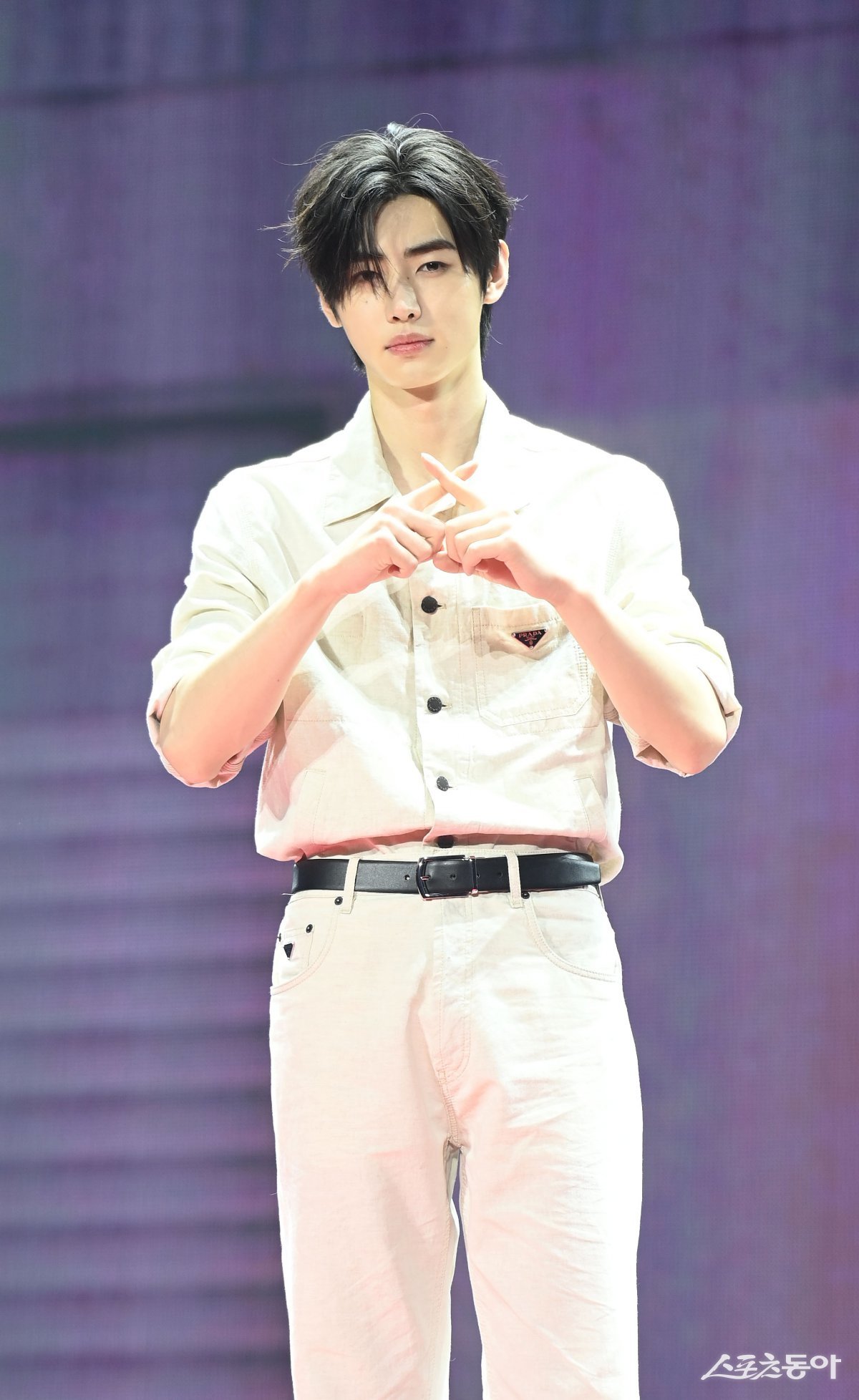 그룹 ‘엔하이픈(ENHYPEN)’ 성훈이 11일 서울 송파구 올림픽공원 핸드볼경기장에서 열린 정규 2집 ‘로맨스 : 언톨드(ROMANCE : UNTOLD)’ 발매 쇼케이스에서 포토타임을 갖고 있다. 김종원 기자 won@donga.com